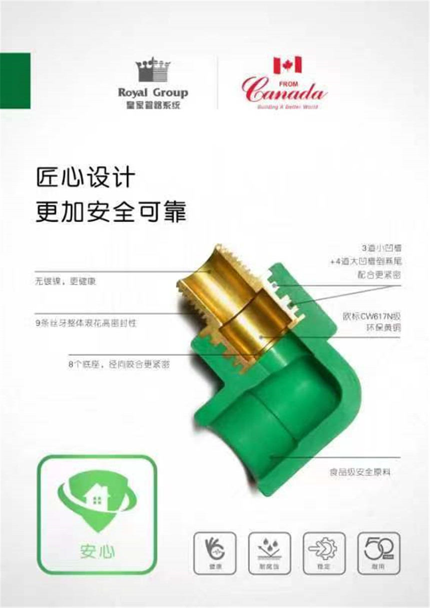 PP-R冷熱水管路系統(tǒng)皇家PP-R管材、管件件均采用進口北歐化工(博祿)PP-R樹脂顆粒,采用技術先進的巴頓菲爾擠出機設備生產(chǎn)。PP-R管材按照GB/T18742.2-2002,管件按照GB/T18742.3-2002組織生產(chǎn)。PP-R管以質輕耐用、綠色環(huán)保、使用壽命長等眾多優(yōu)點廣泛運用于室內(nèi)冷熱給水系統(tǒng)、純凈水系統(tǒng)和地板采暖系統(tǒng),越來越受到人們的青睞。